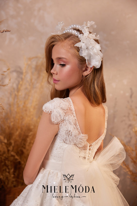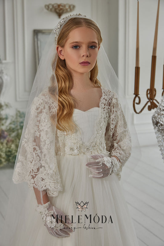 Our white first communion dresses embody the latest fashion trends, offering a range of contemporary styles that blend luxurious design with high-quality craftsmanship. Delight your child with intricate elements that make each dress truly special. Complete the look with accessories such as veils, gloves, and headbands, reflecting the perfect tone for this momentous occasion. Your little one's traditional Catholic outfit from Miele Moda will transform the Holy Communion ceremony into an unforgettable and cherished experience!