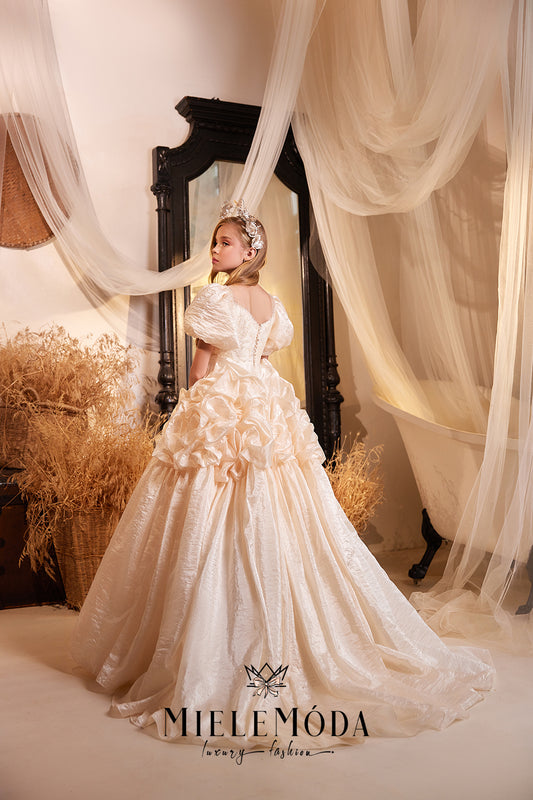Shop Miele Moda Luxury Fashion to find the white couture flower girl or First Communion dress she will adore and enjoy wearing.