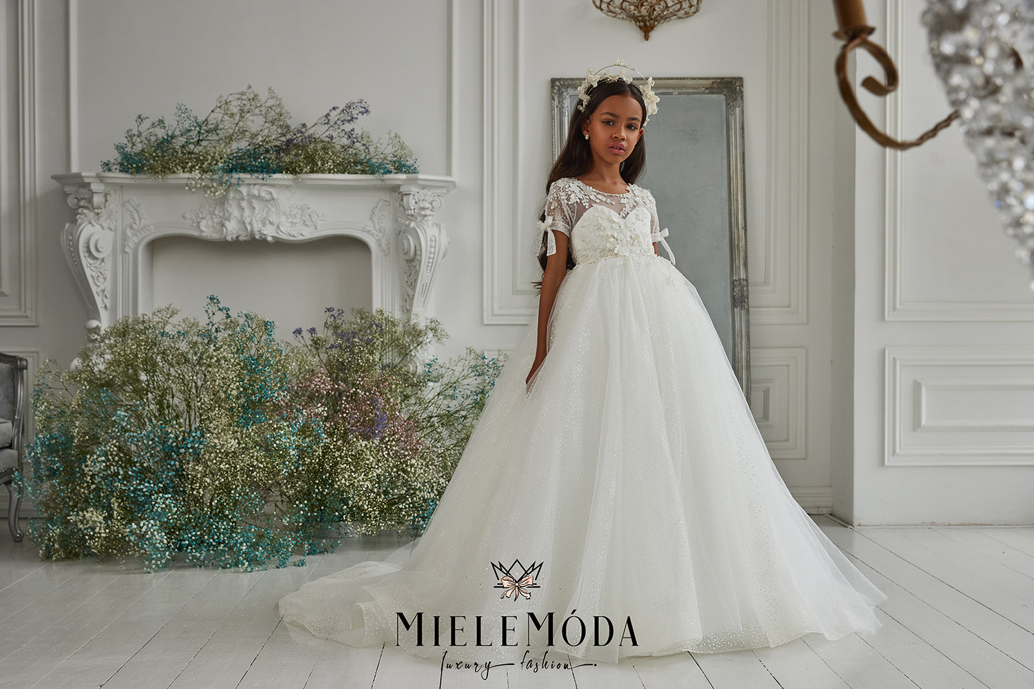 On the Cart page, please add all additional information regarding the customization of your order, for example - your child's exact measurements, train or no train, etc. We do require the following measurements: Chest, Waist and Length from Underarm to Hem (where you would like the dress to end). If your gown has sleeves, please also include the Bicep circumference, sleeve length from shoulder to wrist and wrist circumference. Use the bellow guide for guidance on how to correctly measure. If you need further help taking the correct measurements, please email us at mielemoda@gmail.com