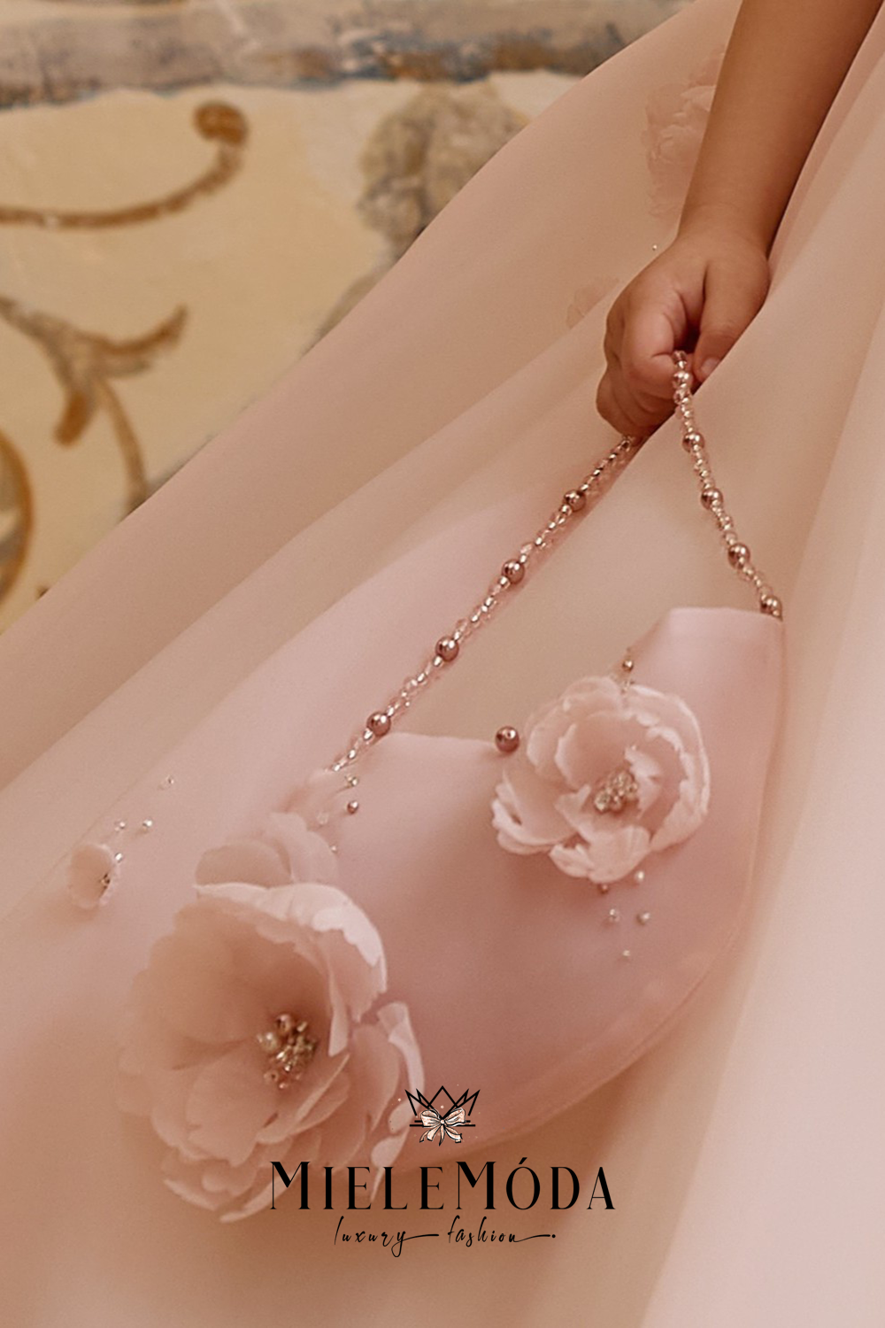 - Soft blush color matching our Eclat de Petale 3D flowers couture flower girl dress
