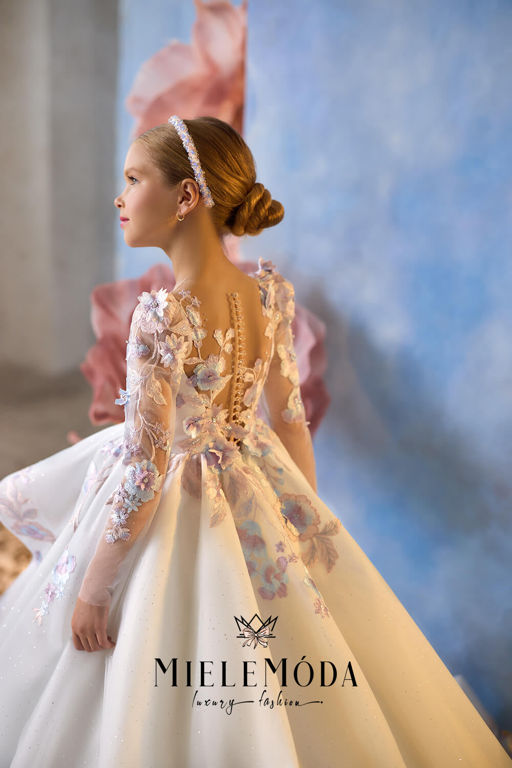 Introducing one of our finest, the Frosted Lily Flower Girl Dress, an enchanting creation we designed to make your little one blossom with elegance on her special day. This breathtaking dress, with its remarkable European craftsmanship, merges timeless charm with modern sophistication, creating a look that is both magical and memorable. Ideal for weddings, first communions, or any special event, the Frosted Lily Flower Girl Dress is a masterpiece of luxury and elegance, ensuring your little one shines like a true flower in full bloom.