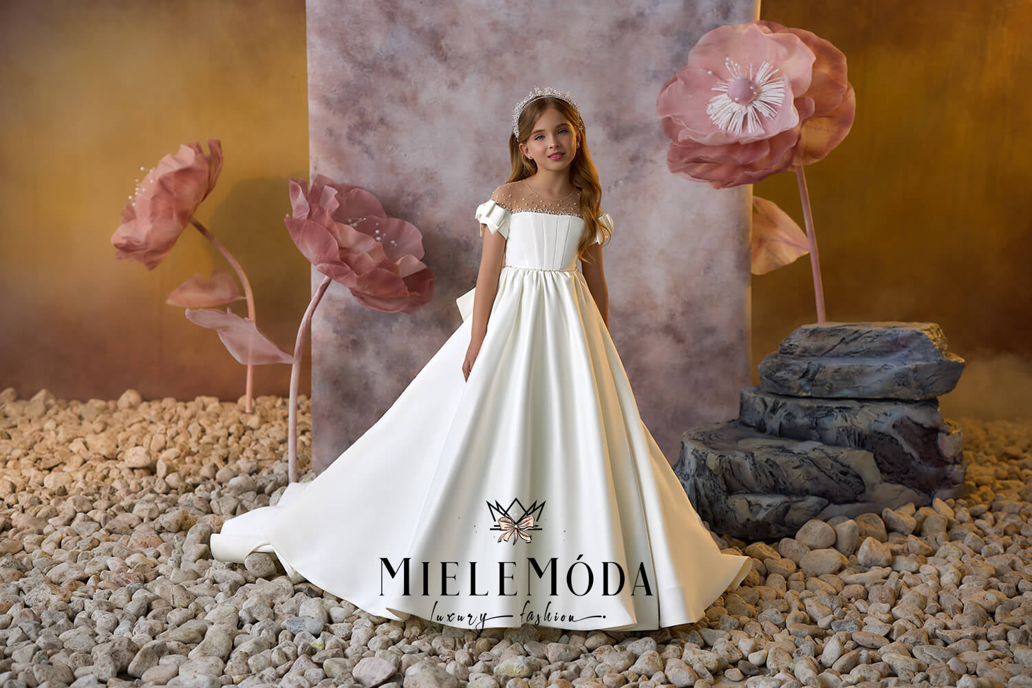 On the Cart page, please add all additional information regarding the customization of your order, for example - your child's exact measurements, train or no train, etc. We do require the following measurements: Chest, Waist and Length from Underarm to Hem (where you would like the dress to end). If your gown has sleeves, please also include the Bicep circumference, sleeve length from shoulder to wrist and wrist circumference. Use the bellow guide for guidance on how to correctly measure. If you need further help taking the correct measurements, please email us at mielemoda@gmail.com
