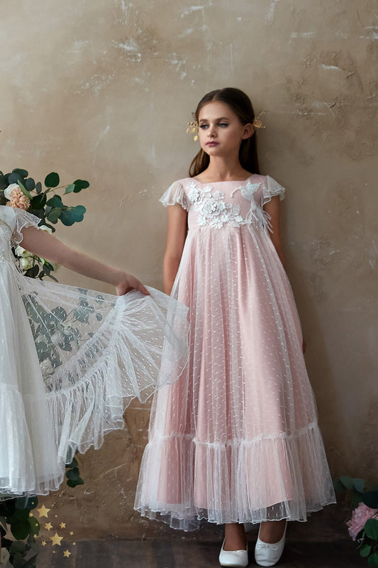 Clara Luxury Flower Girl Communion Dress in Ivory