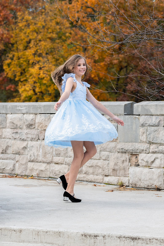 Megan 3D Lace Sparkly Party Dress in Ice Blue