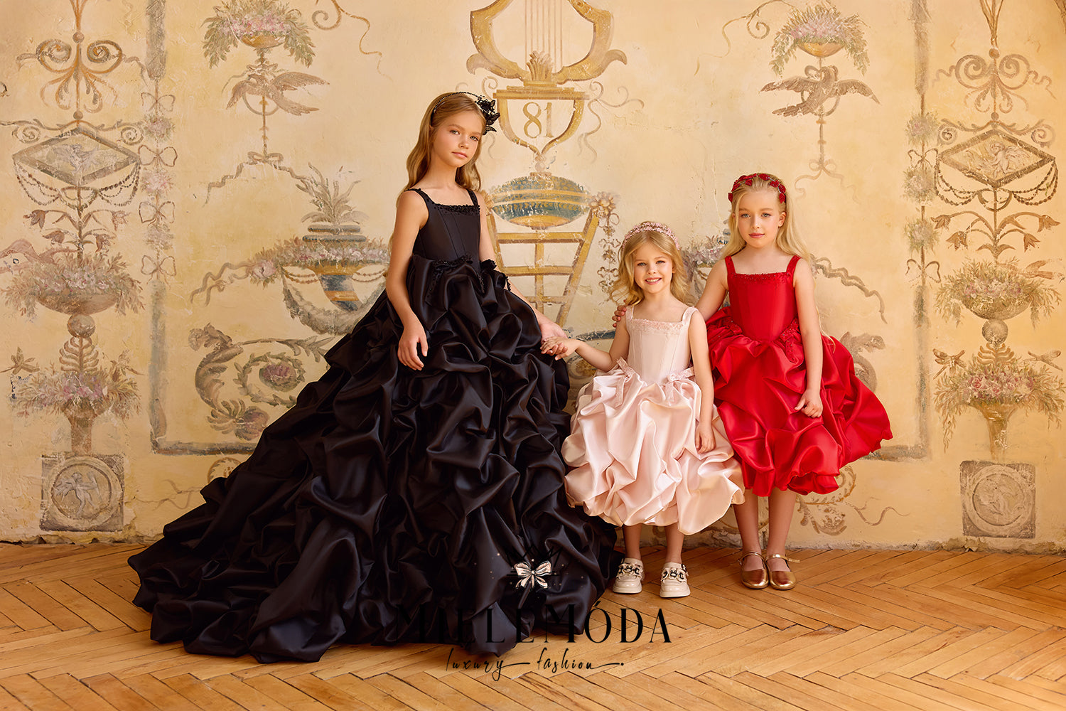 Should non of our Standard sizes work for you, we can handcraft your dress according to your child's custom measurements. Custom sizes are where we shine best, making your girl's gown fit like a glove and taking away the worry of alterations. Please select Custom from the Size drop down and Add to Cart.