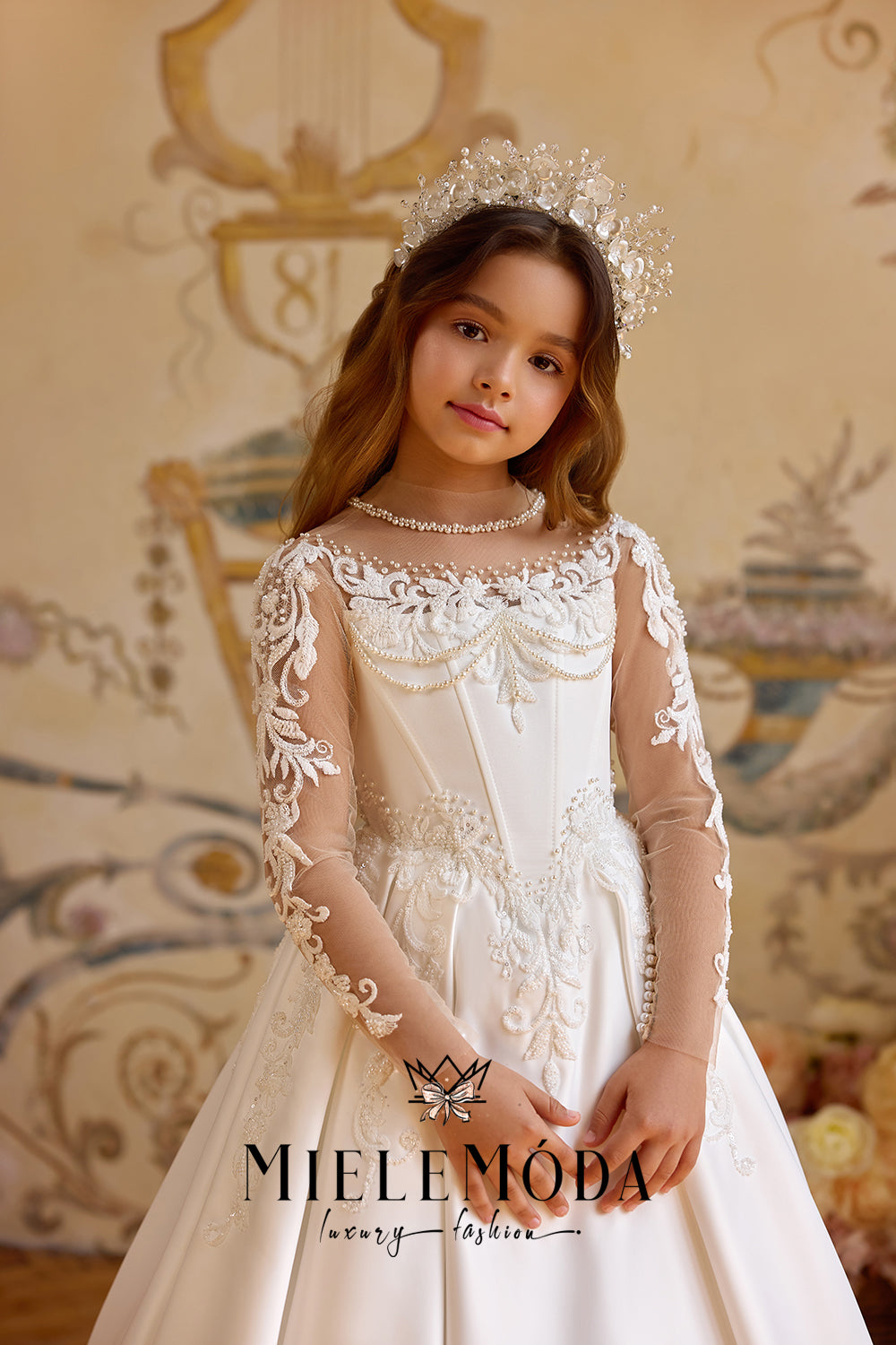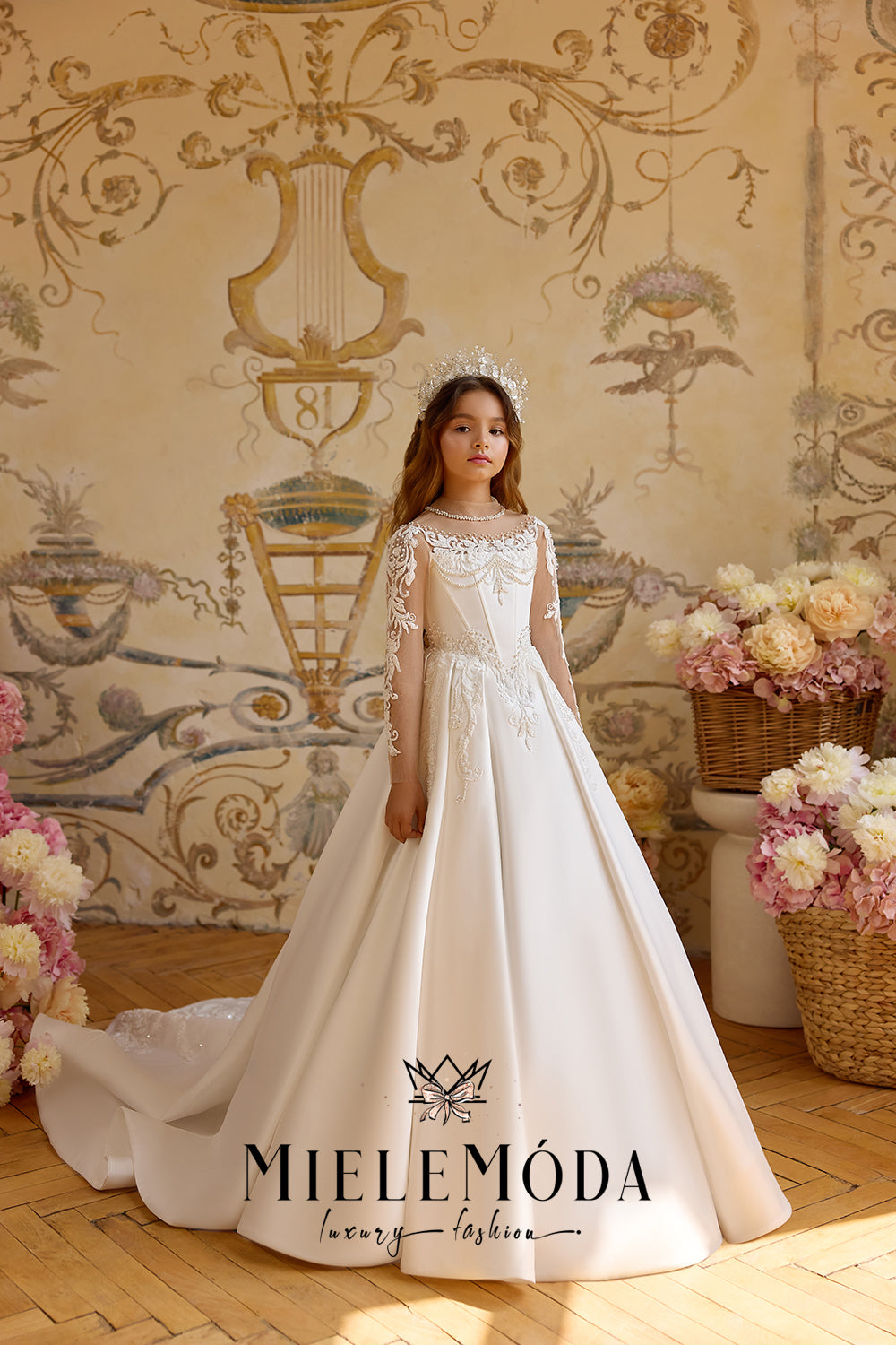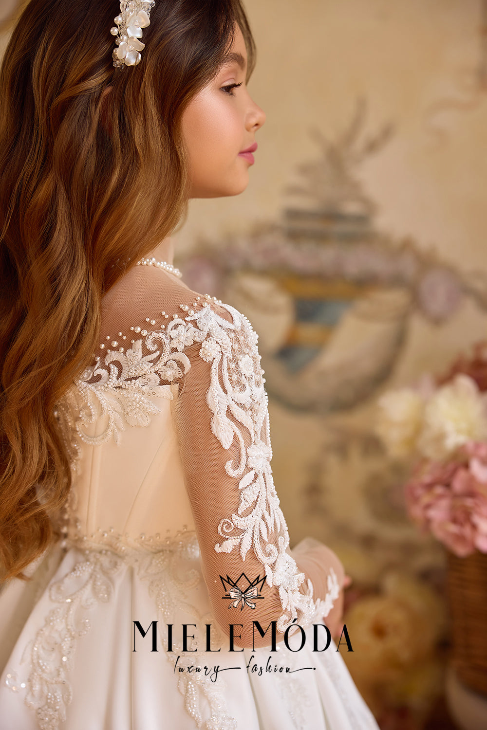On the Cart page, please add all additional information regarding the customization of your order, for example - your child's exact measurements, train or no train, etc. We do require the following measurements: Chest, Waist and Length from Underarm to Hem (where you would like the dress to end). If your gown has sleeves, please also include the Bicep circumference, sleeve length from shoulder to wrist and wrist circumference. Use the bellow guide for guidance on how to correctly measure. If you need further help taking the correct measurements, please email us at mielemoda@gmail.com