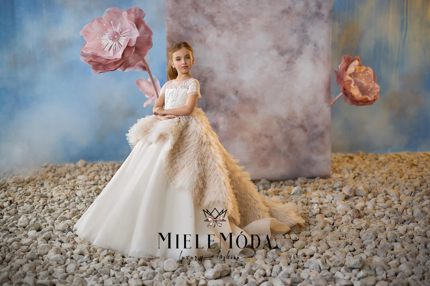 The Celestial Dream flower girl dress is more than just a dress; it’s a work of art, designed to make your little one shine on her special day.