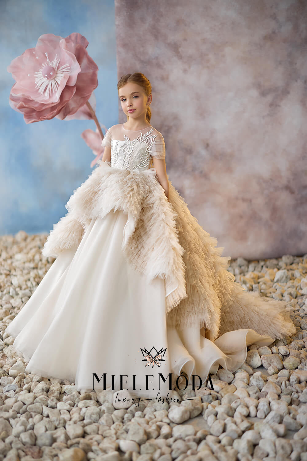 - Timeless Whimsical Train: The long, whimsical train extends from the dress, creating a dramatic and unforgettable entrance, making this dress ideal for any flower girl at a luxury wedding or special event.