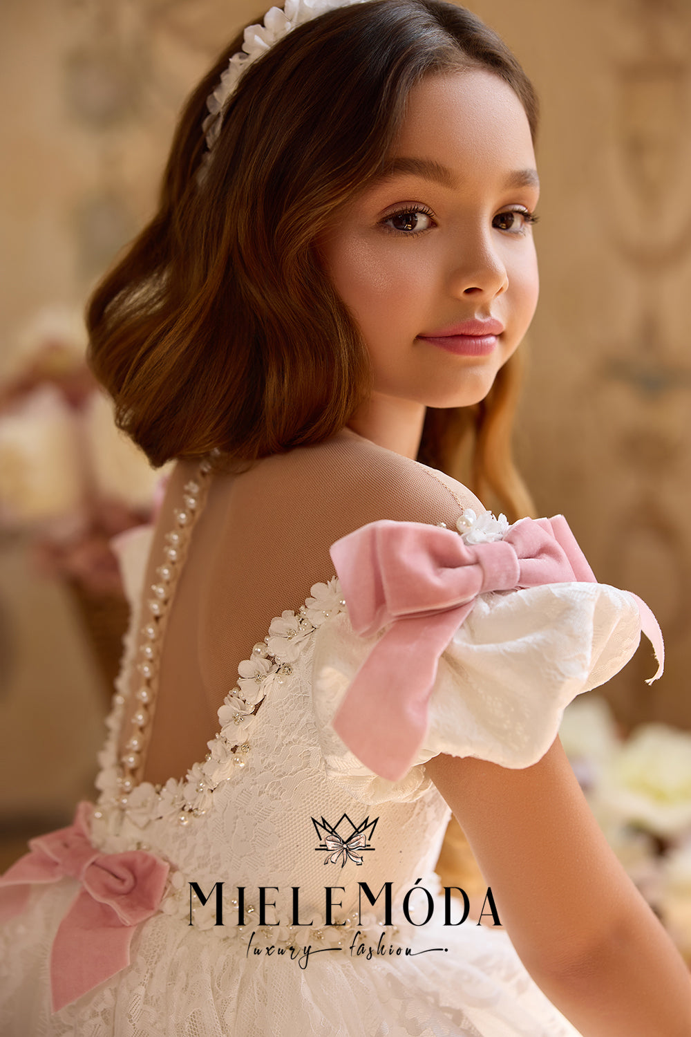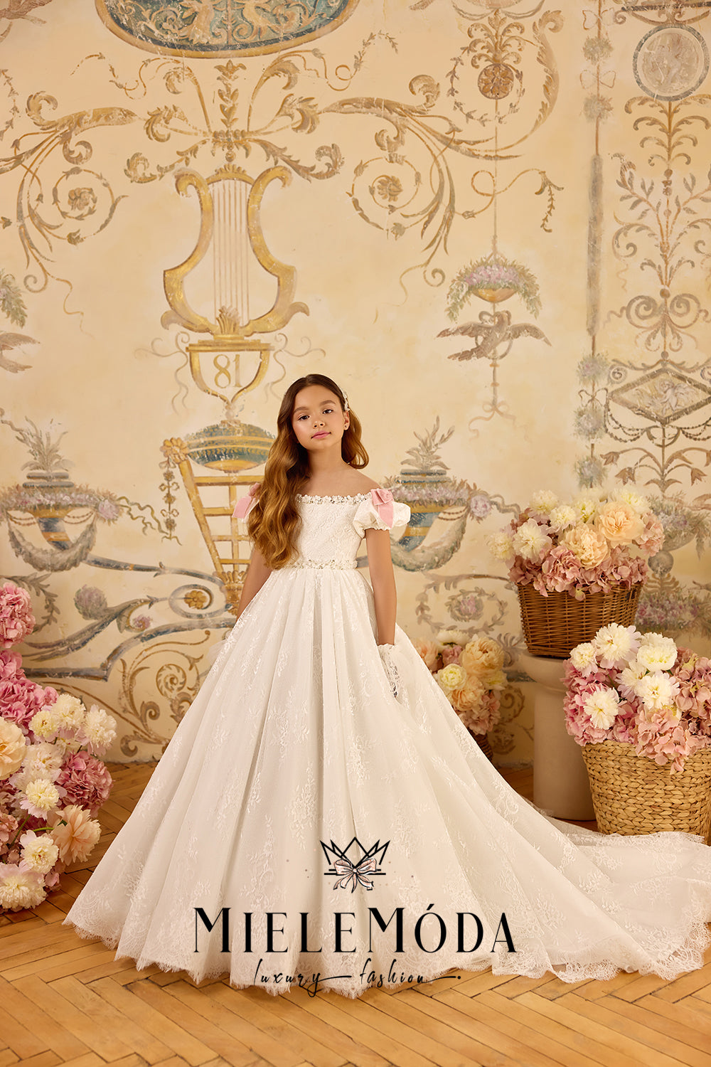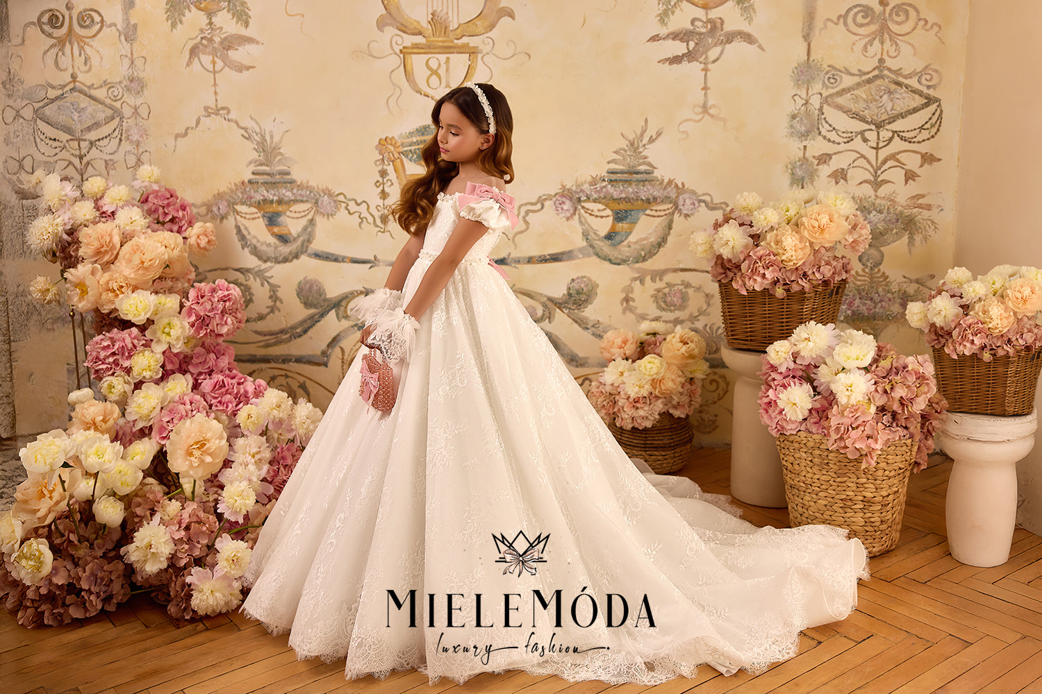 On the Cart page, please add all additional information regarding the customization of your order, for example - your child's exact measurements, train or no train, etc. We do require the following measurements: Chest, Waist and Length from Underarm to Hem (where you would like the dress to end). If your gown has sleeves, please also include the Bicep circumference, sleeve length from shoulder to wrist and wrist circumference. Use the bellow guide for guidance on how to correctly measure. If you need further help taking the correct measurements, please email us at mielemoda@gmail.com