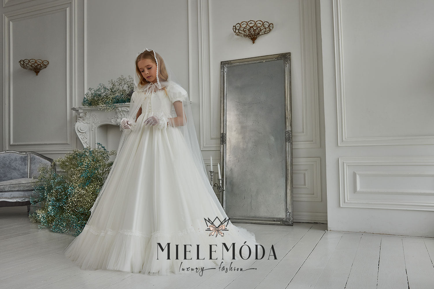 On the Cart page, please add all additional information regarding the customization of your order, for example - your child's exact measurements, train or no train, etc. We do require the following measurements: Chest, Waist and Length from Underarm to Hem (where you would like the dress to end). If your gown has sleeves, please also include the Bicep circumference, sleeve length from shoulder to wrist and wrist circumference. Use the bellow guide for guidance on how to correctly measure. If you need further help taking the correct measurements, please email us at mielemoda@gmail.com