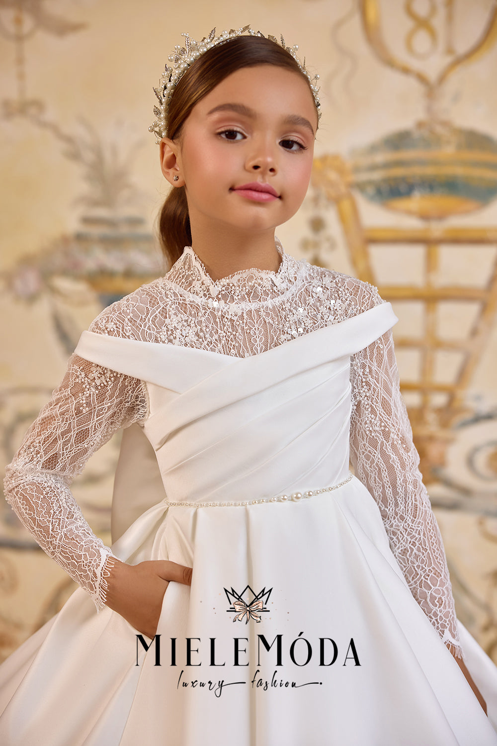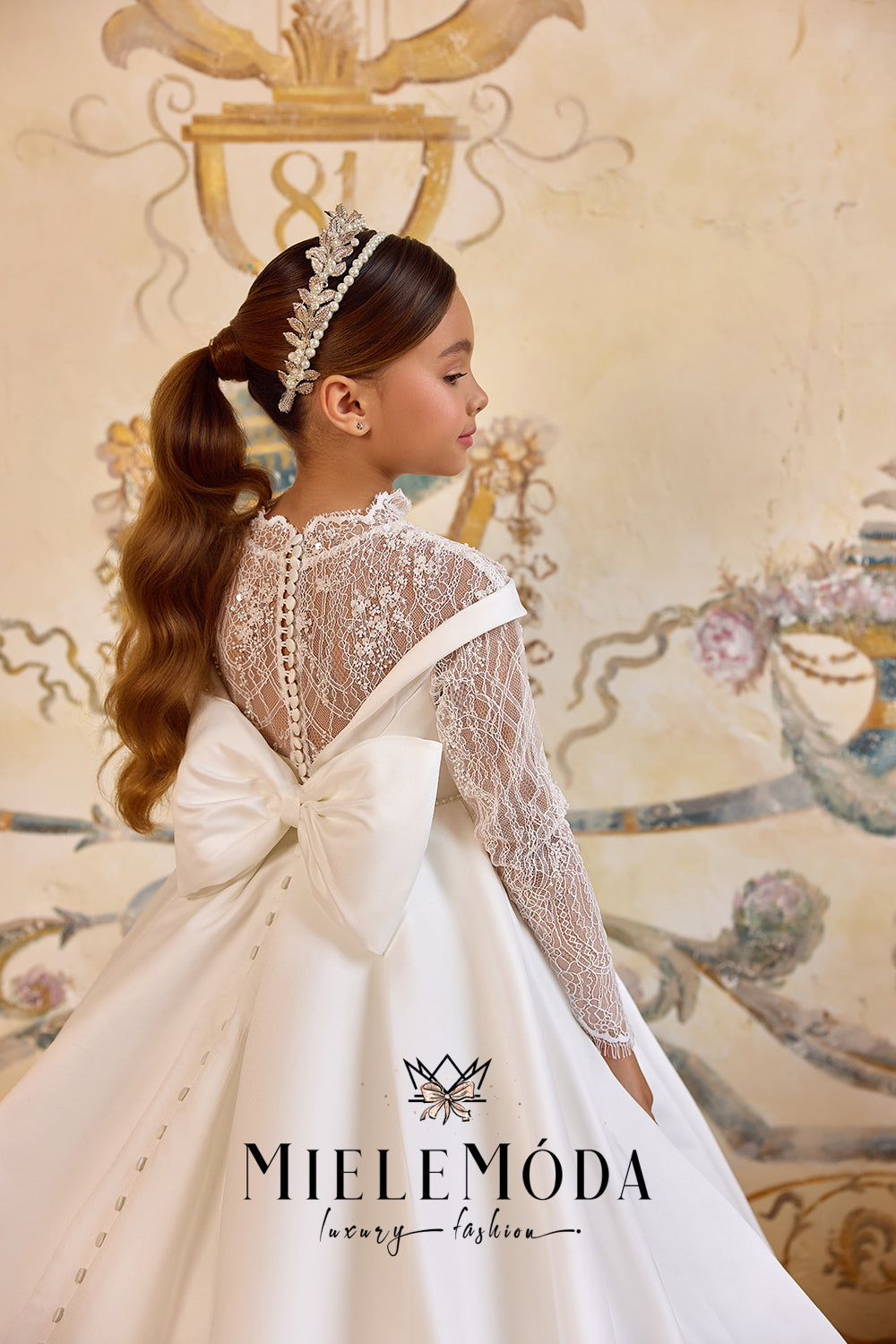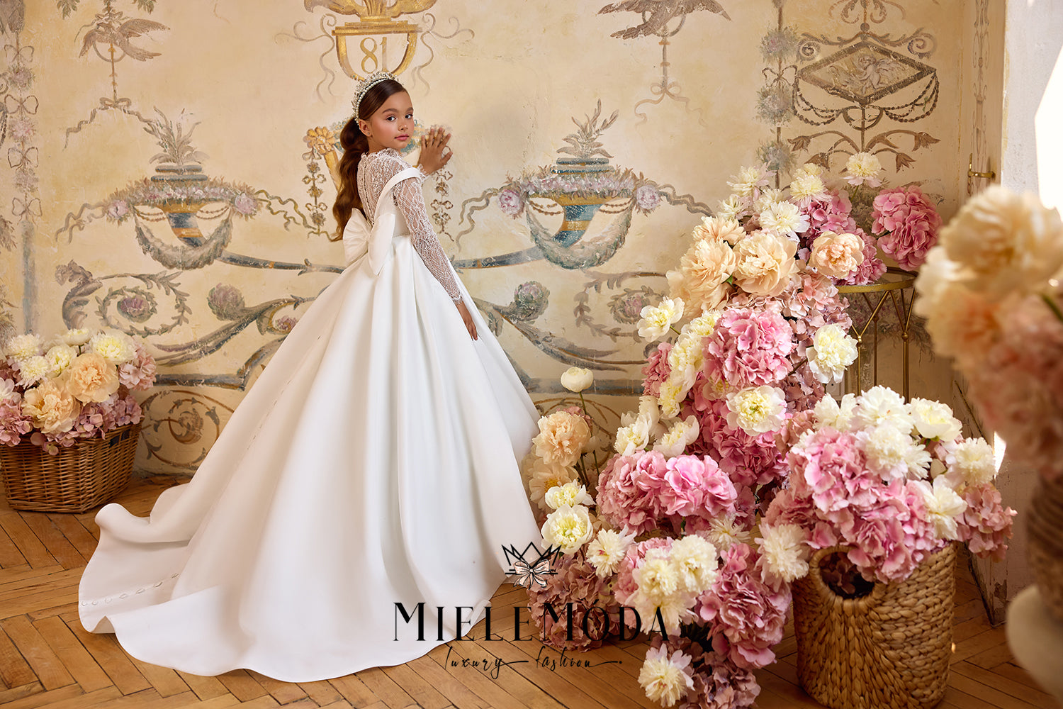 On the Cart page, please add all additional information regarding the customization of your order, for example - your child's exact measurements, train or no train, etc. We do require the following measurements: Chest, Waist and Length from Underarm to Hem (where you would like the dress to end). If your gown has sleeves, please also include the Bicep circumference, sleeve length from shoulder to wrist and wrist circumference. Use the bellow guide for guidance on how to correctly measure. If you need further help taking the correct measurements, please email us at mielemoda@gmail.com