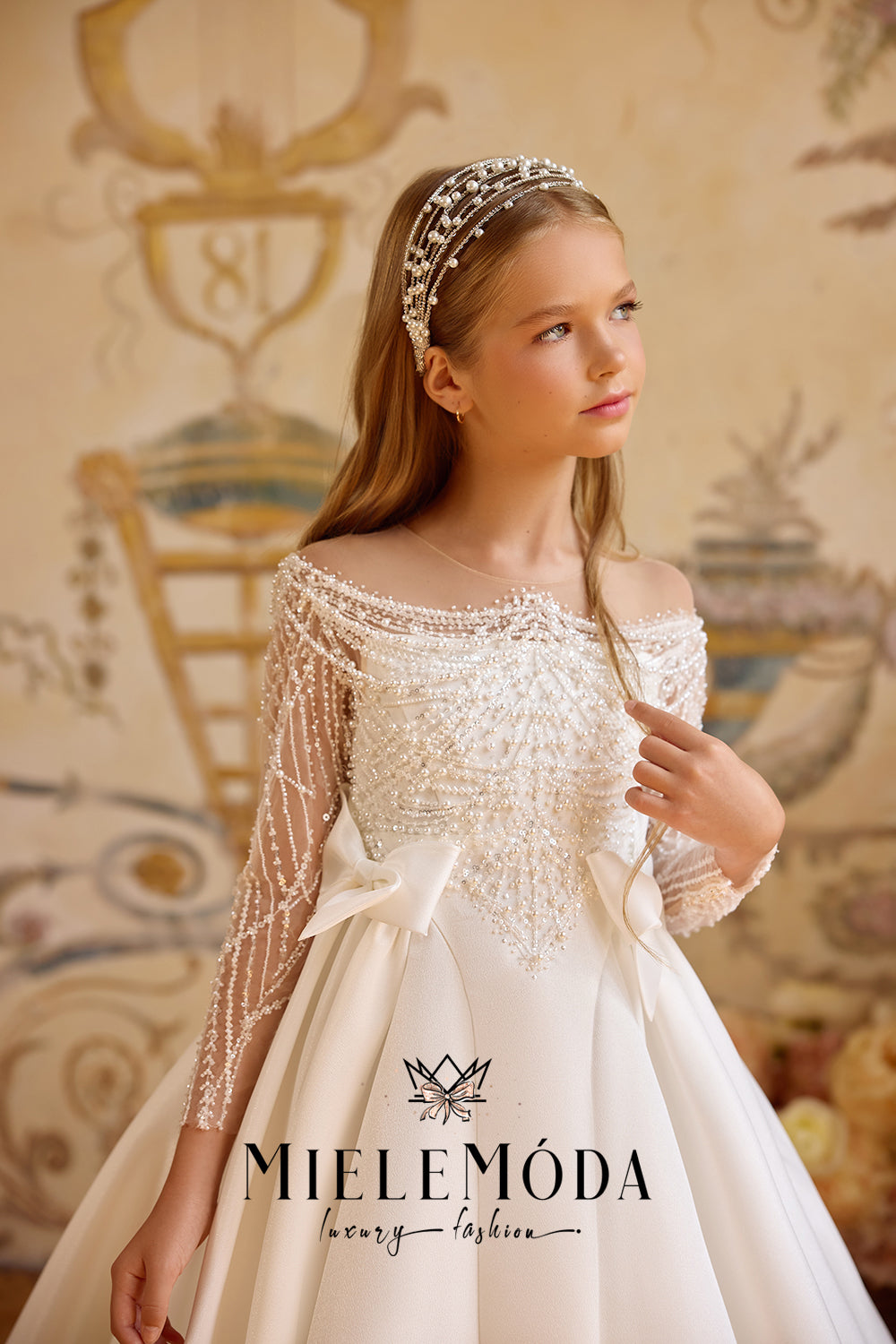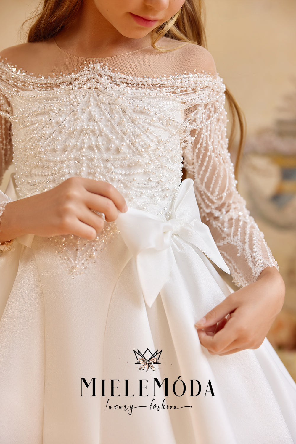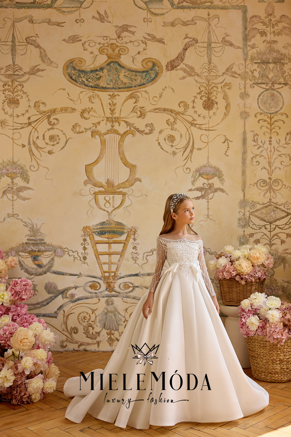 On the Cart page, please add all additional information regarding the customization of your order, for example - your child's exact measurements, train or no train, etc. We do require the following measurements: Chest, Waist and Length from Underarm to Hem (where you would like the dress to end). If your gown has sleeves, please also include the Bicep circumference, sleeve length from shoulder to wrist and wrist circumference. Use the bellow guide for guidance on how to correctly measure. If you need further help taking the correct measurements, please email us at mielemoda@gmail.com