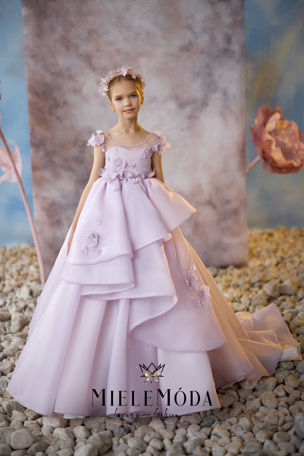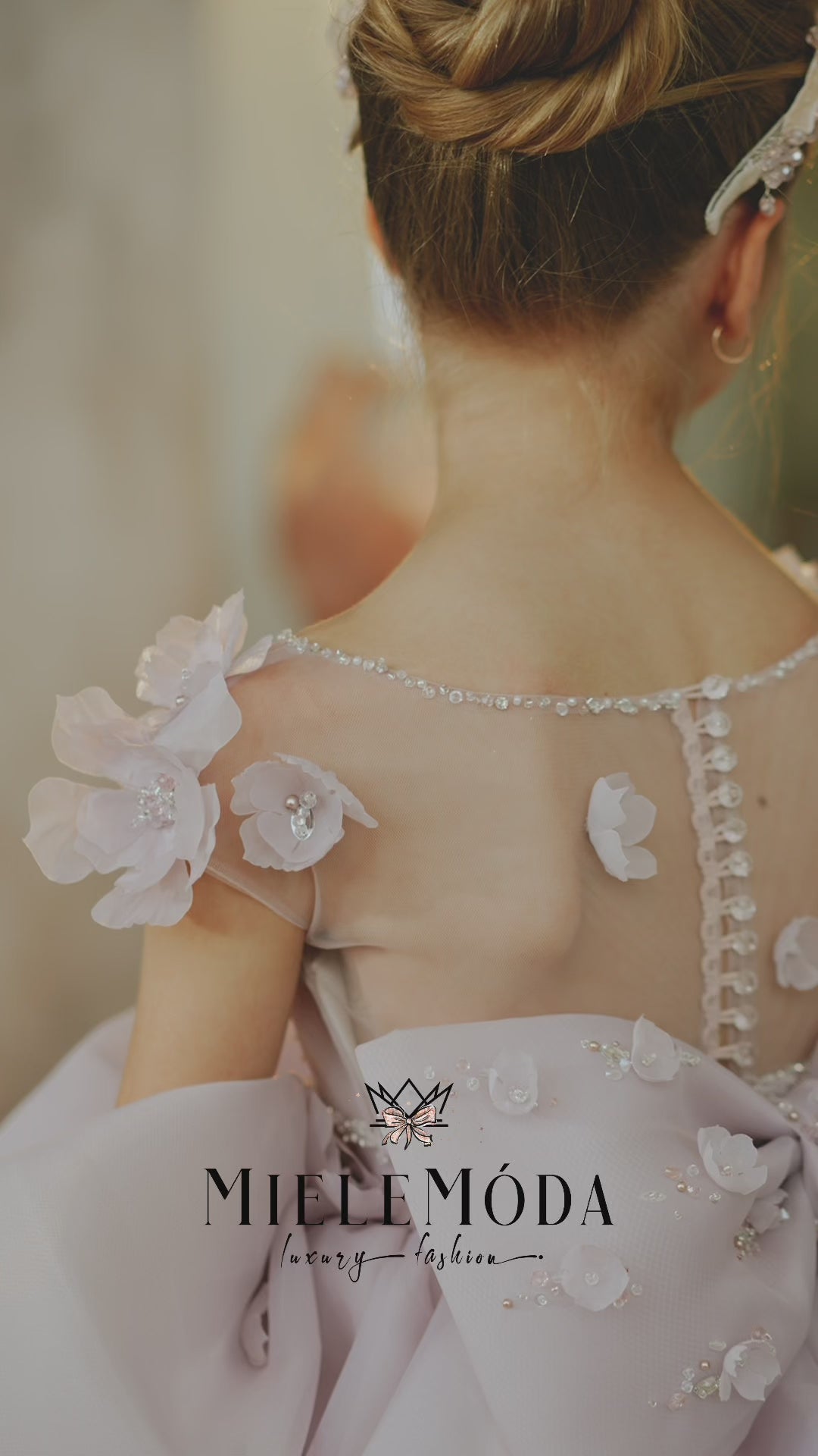 Let your flower girl shine in the Heavenly Aura gown, a stunning piece that exudes grace and charm. This dress features a floor-length, organza frill skirt that moves with an ethereal flow, creating an almost celestial effect as she walks. The bodice is a masterpiece of European organza and beadwork, with a charming sweetheart neckline that adds a touch of tenderness. What truly sets this gown apart is the cascading florals that trail from the waist to the hem, creating a garden-like illusion that will captivate everyoneβs attention. Perfect for outdoor weddings or garden-themed ceremonies, this dress is a beautiful blend of nature and elegance. Future brides will adore how this gown complements their own wedding theme, while moms will appreciate the craftsmanship and attention to detail that ensures their little one looks and feels exceptional.