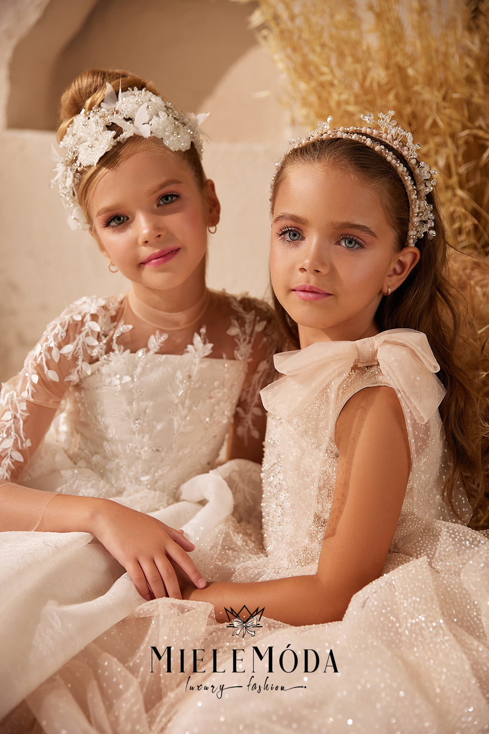 On the Cart page, please add all additional information regarding the customization of your order, for example - your child's exact measurements, train or no train, etc. We do require the following measurements: Chest, Waist and Length from Underarm to Hem (where you would like the dress to end). If your gown has sleeves, please also include the Bicep circumference, sleeve length from shoulder to wrist and wrist circumference. Use the bellow guide for guidance on how to correctly measure. If you need further help taking the correct measurements, please email us at mielemoda@gmail.com