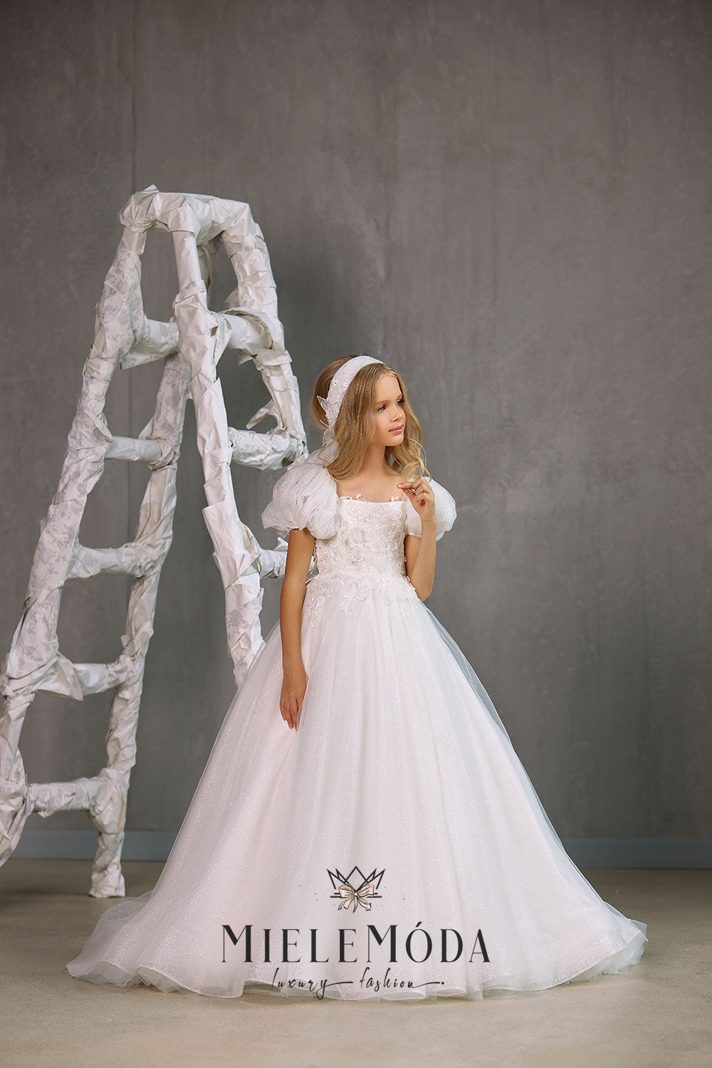 On the Cart page, please add all additional information regarding the customization of your order, for example - your child's exact measurements, train or no train, etc. We do require the following measurements: Chest, Waist and Length from Underarm to Hem (where you would like the dress to end). If your gown has sleeves, please also include the Bicep circumference, sleeve length from shoulder to wrist and wrist circumference. Use the bellow guide for guidance on how to correctly measure. If you need further help taking the correct measurements, please email us at mielemoda@gmail.com