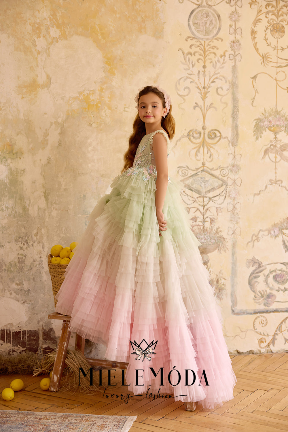Rosa Enchantée Couture Flower Girl Ombre Dress