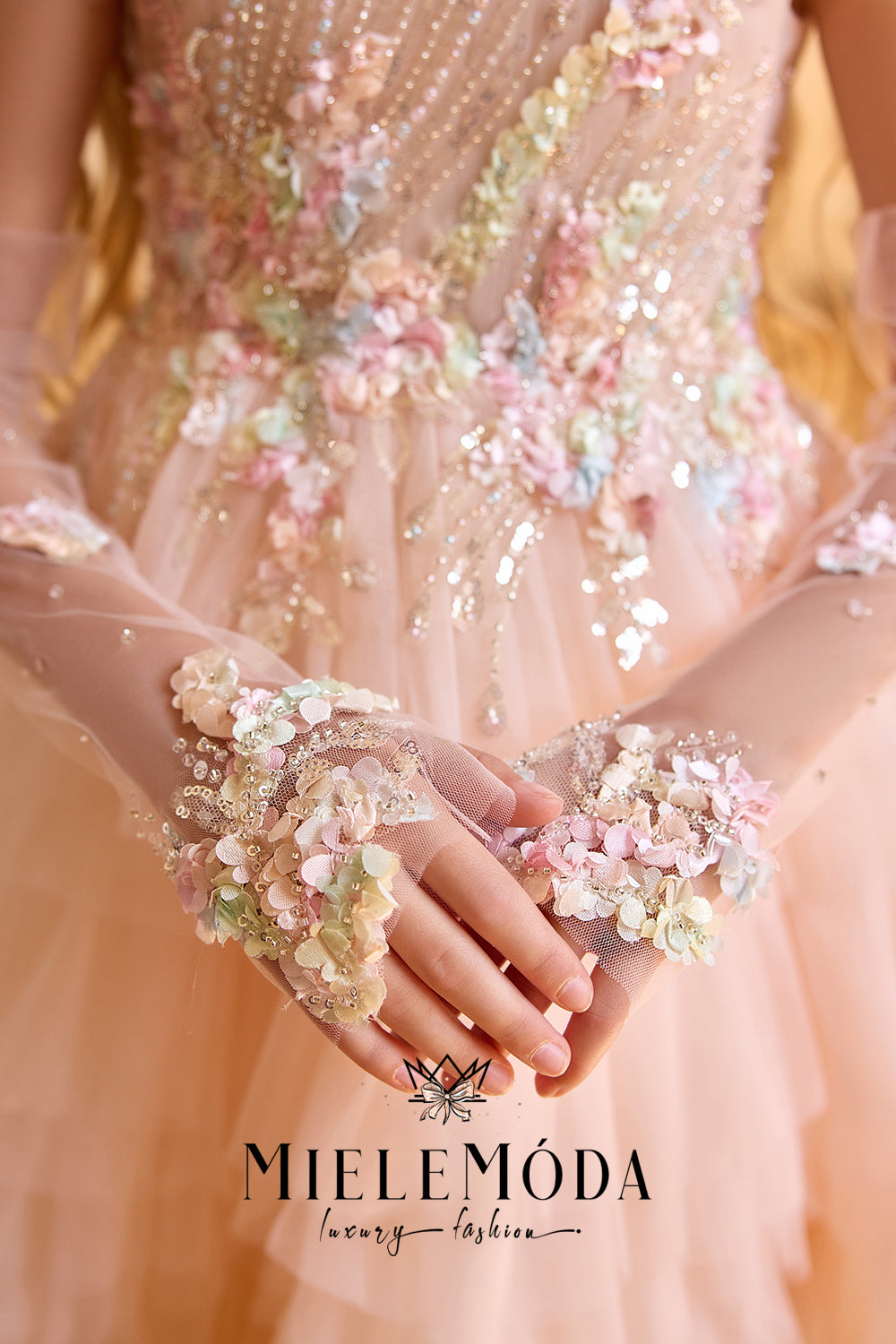 On the Cart page, please add all additional information regarding the customization of your order, for example - your child's exact measurements, train or no train, etc. We do require the following measurements: Chest, Waist and Length from Underarm to Hem (where you would like the dress to end). If your gown has sleeves, please also include the Bicep circumference, sleeve length from shoulder to wrist and wrist circumference. Use the bellow guide for guidance on how to correctly measure. If you need further help taking the correct measurements, please email us at mielemoda@gmail.com
