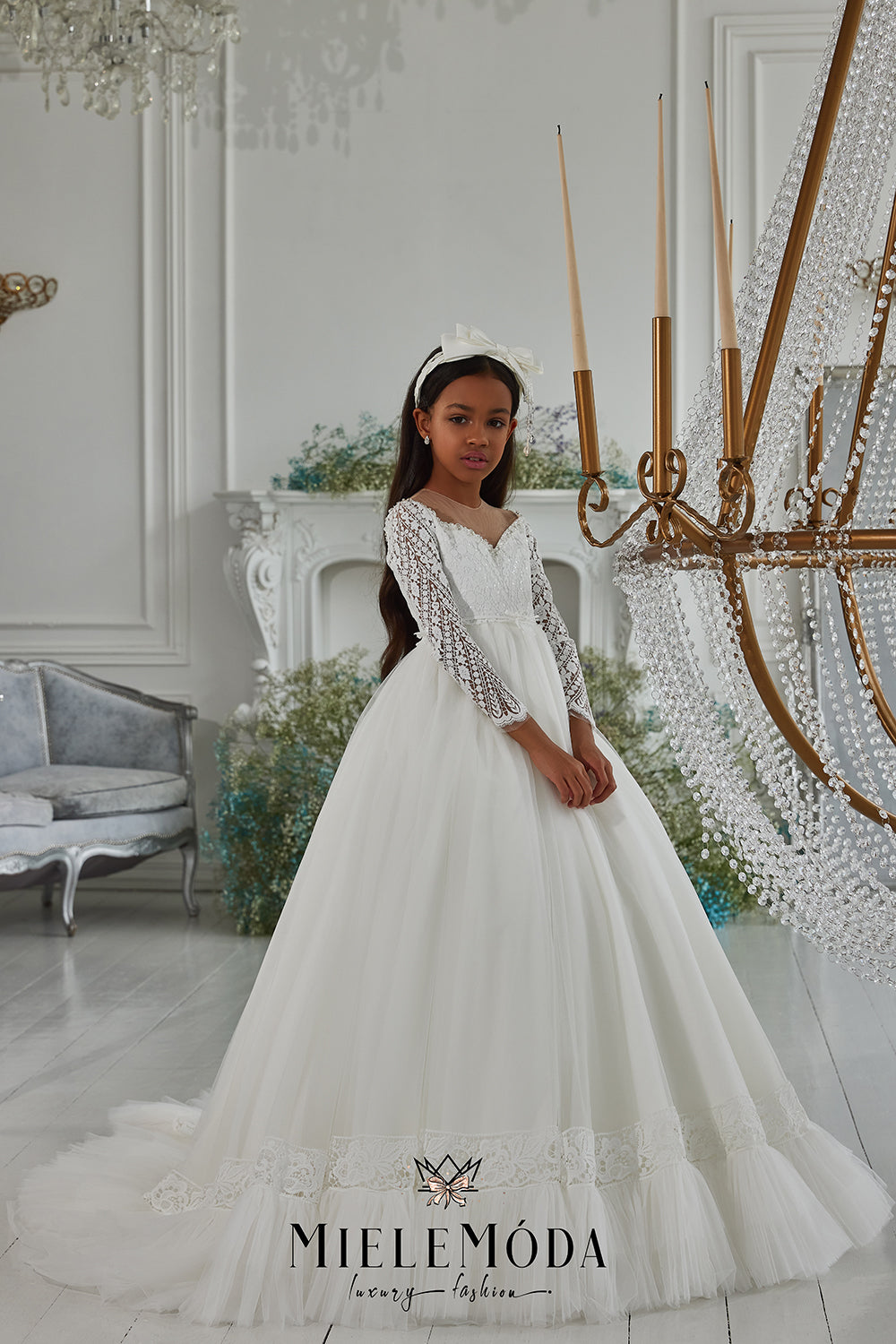 On the Cart page, please add all additional information regarding the customization of your order, for example - your child's exact measurements, train or no train, etc. We do require the following measurements: Chest, Waist and Length from Underarm to Hem (where you would like the dress to end). If your gown has sleeves, please also include the Bicep circumference, sleeve length from shoulder to wrist and wrist circumference. Use the bellow guide for guidance on how to correctly measure. If you need further help taking the correct measurements, please email us at mielemoda@gmail.com