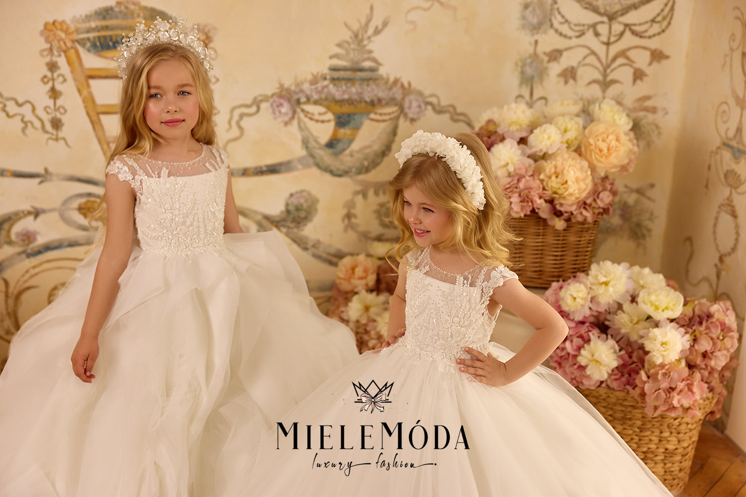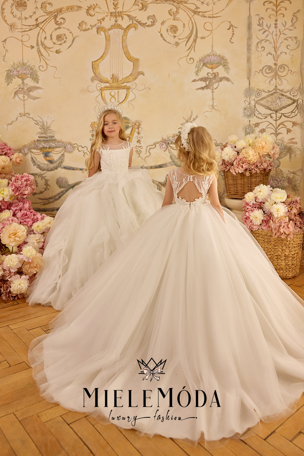 On the Cart page, please add all additional information regarding the customization of your order, for example - your child's exact measurements, train or no train, etc. We do require the following measurements: Chest, Waist and Length from Underarm to Hem (where you would like the dress to end). If your gown has sleeves, please also include the Bicep circumference, sleeve length from shoulder to wrist and wrist circumference. Use the bellow guide for guidance on how to correctly measure. If you need further help taking the correct measurements, please email us at mielemoda@gmail.com