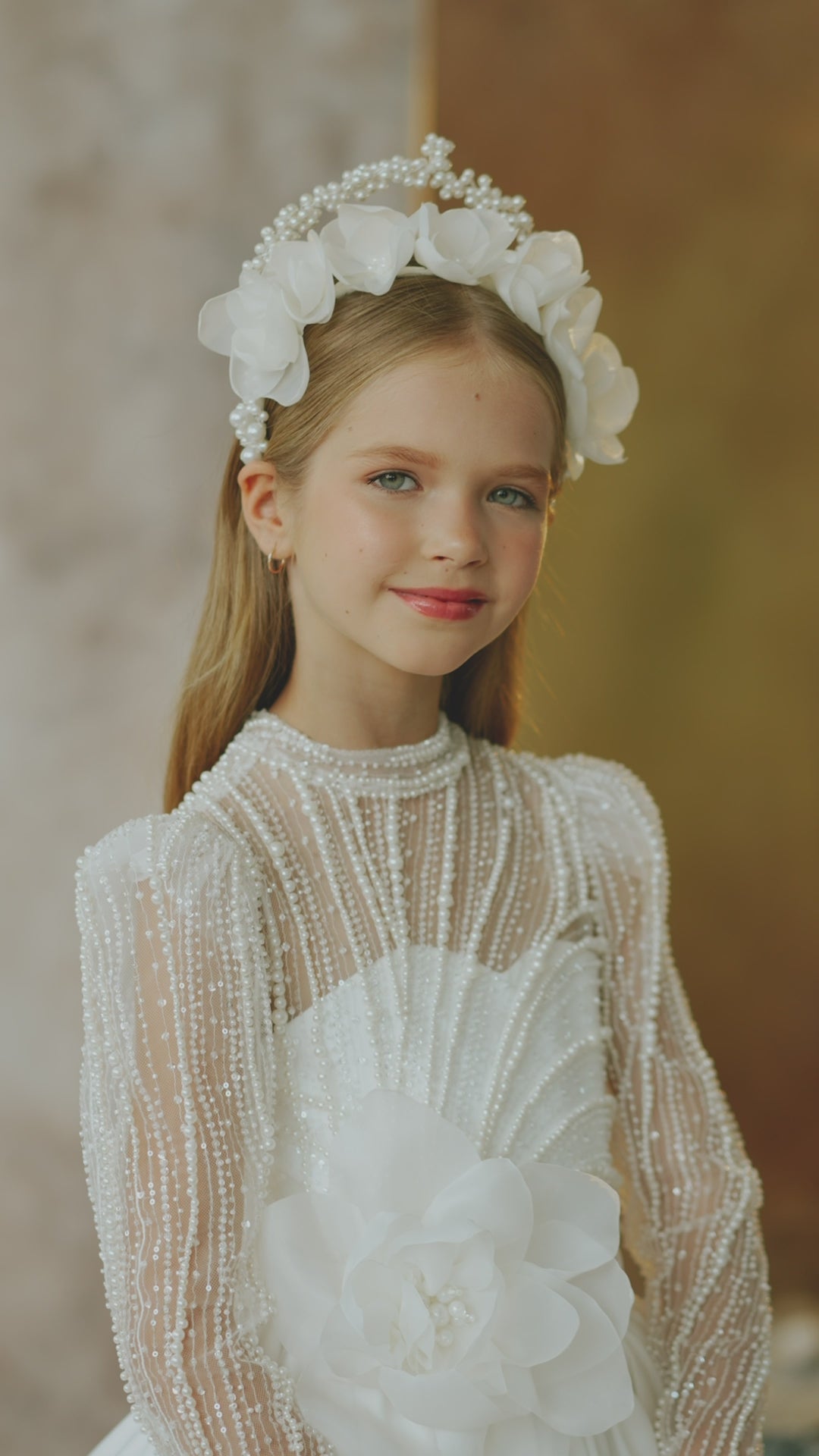 - Oversized bow on the back and an elegant oversized floral embellishment at waistline