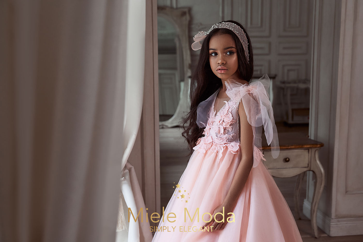 On the Cart page, please add all additional information regarding the customization of your order, for example - your child's exact measurements, train or no train, etc. We do require the following measurements: Chest, Waist and Length from Underarm to Hem (where you would like the dress to end). If your gown has sleeves, please also include the Bicep circumference, sleeve length from shoulder to wrist and wrist circumference. Use the bellow guide for guidance on how to correctly measure. If you need further help taking the correct measurements, please email us at mielemoda@gmail.com