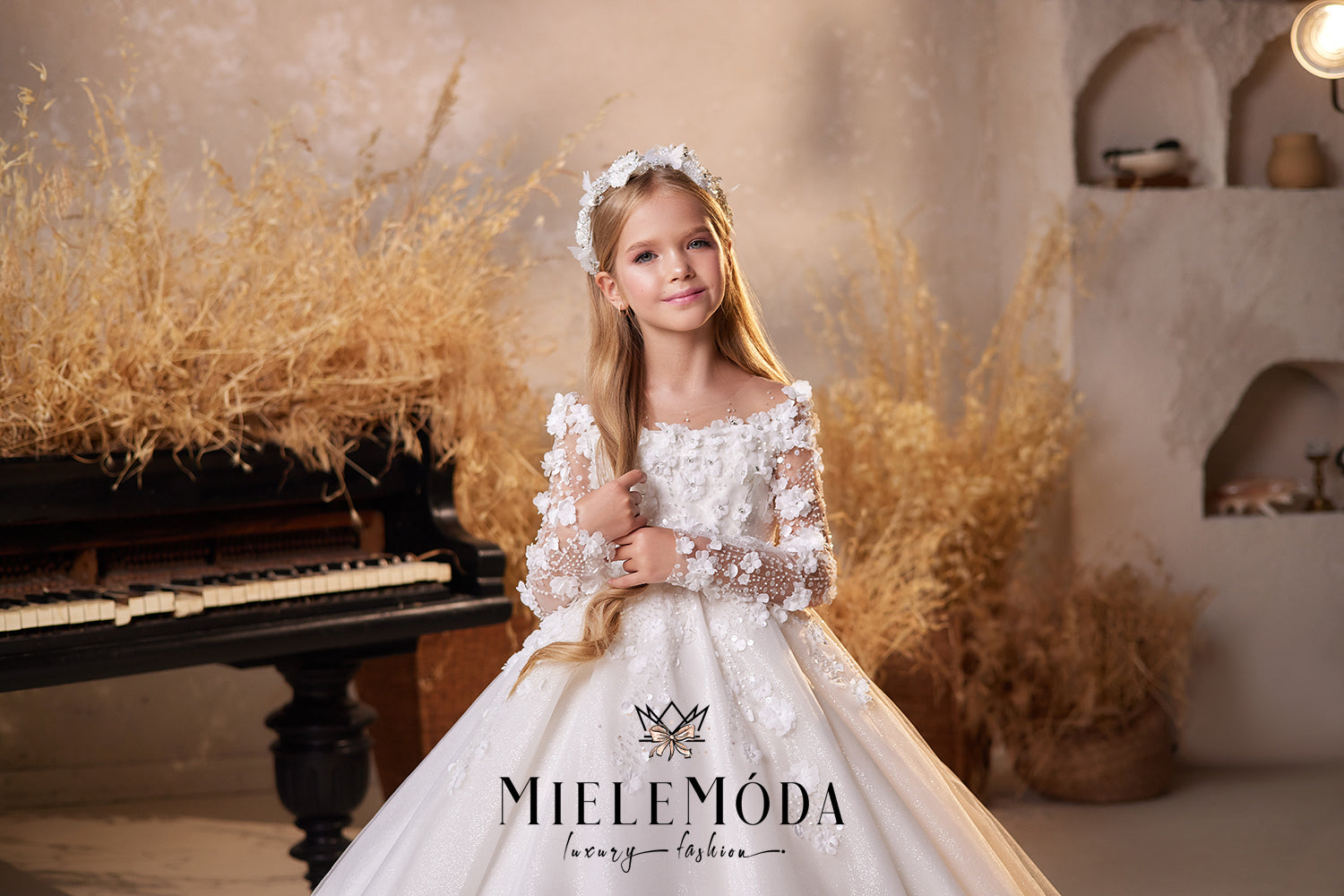 On the Cart page, please add all additional information regarding the customization of your order, for example - your child's exact measurements, train or no train, etc. We do require the following measurements: Chest, Waist and Length from Underarm to Hem (where you would like the dress to end). If your gown has sleeves, please also include the Bicep circumference, sleeve length from shoulder to wrist and wrist circumference. Use the bellow guide for guidance on how to correctly measure. If you need further help taking the correct measurements, please email us at mielemoda@gmail.com