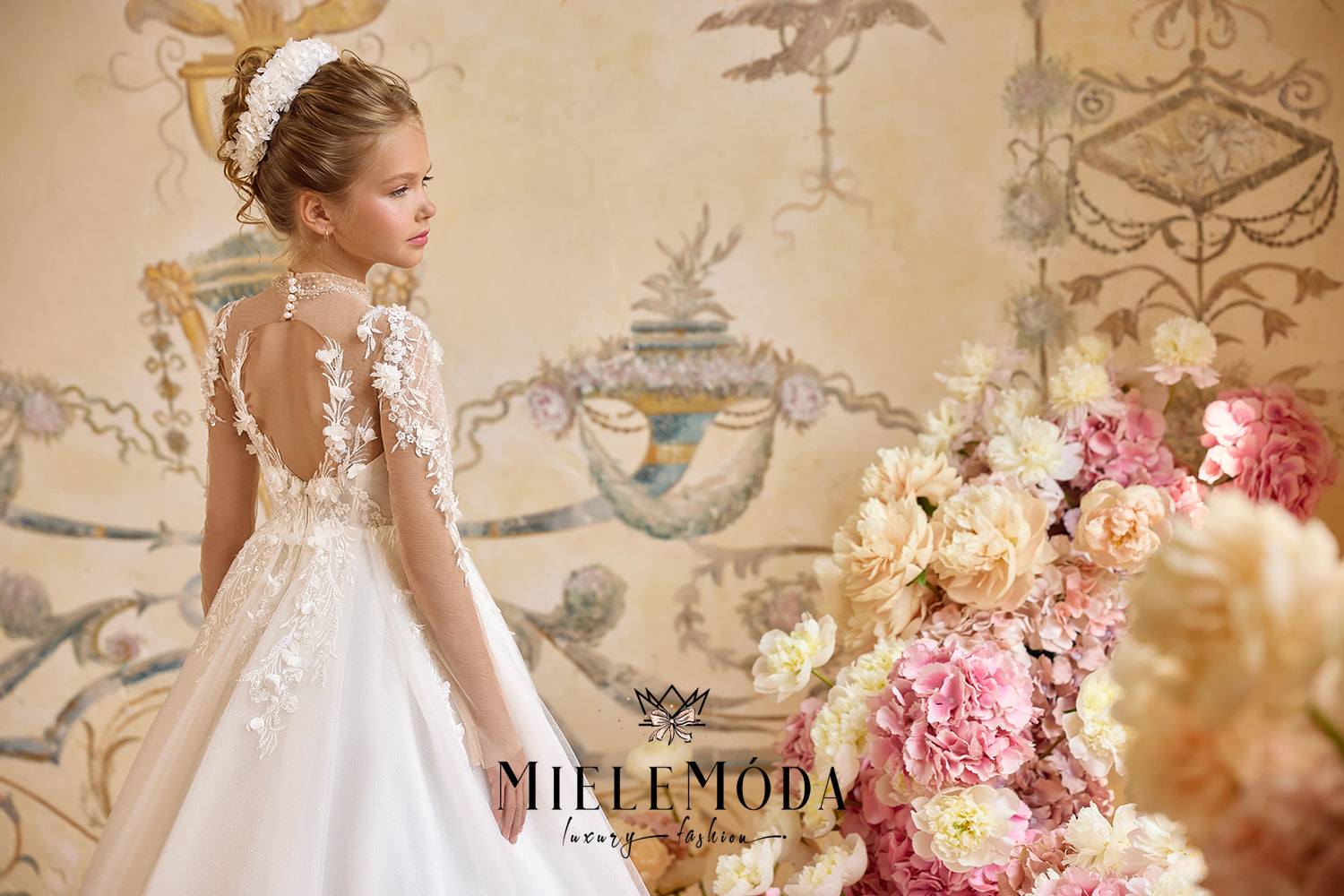 On the Cart page, please add all additional information regarding the customization of your order, for example - your child's exact measurements, train or no train, etc. We do require the following measurements: Chest, Waist and Length from Underarm to Hem (where you would like the dress to end). If your gown has sleeves, please also include the Bicep circumference, sleeve length from shoulder to wrist and wrist circumference. Use the bellow guide for guidance on how to correctly measure. If you need further help taking the correct measurements, please email us at mielemoda@gmail.com