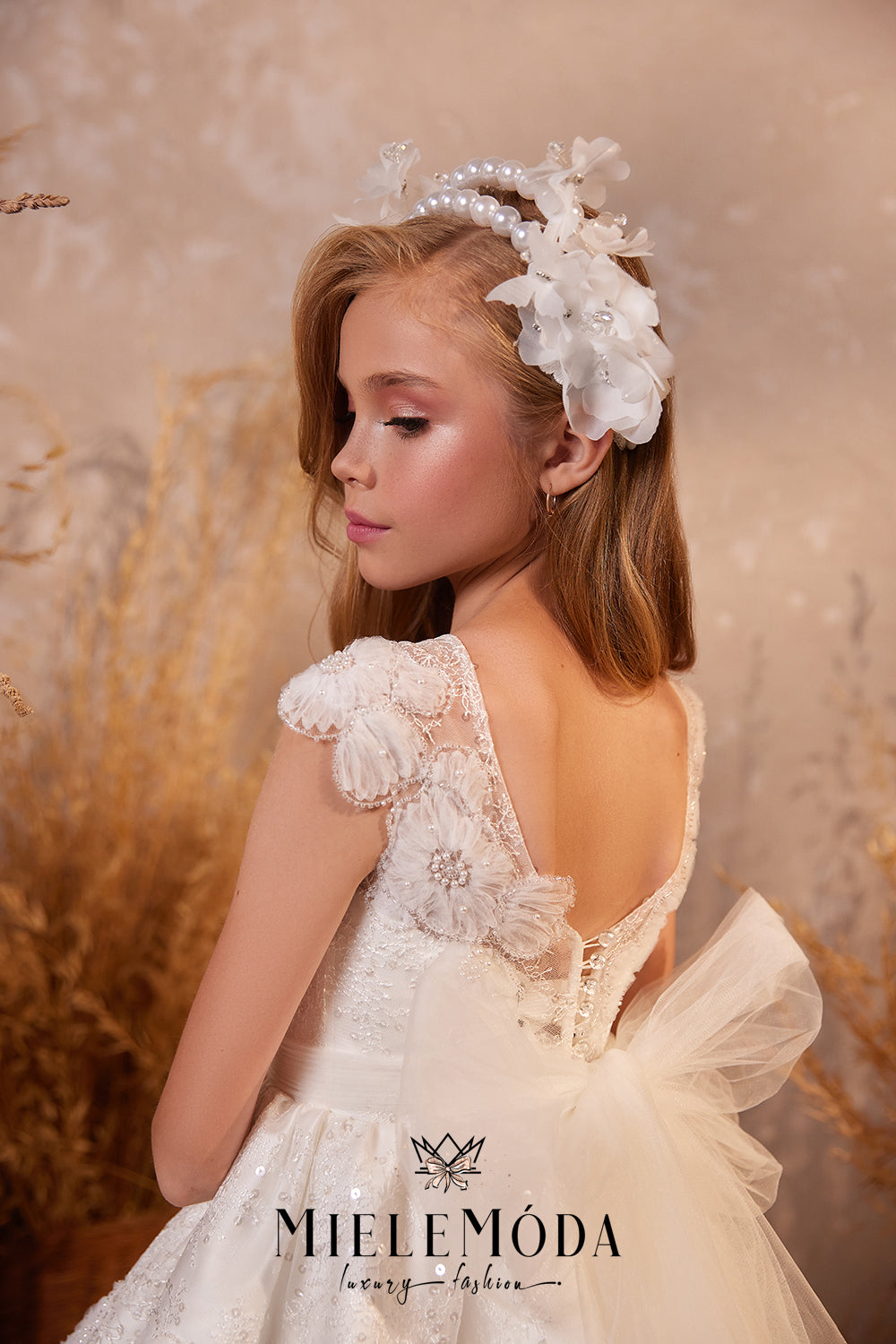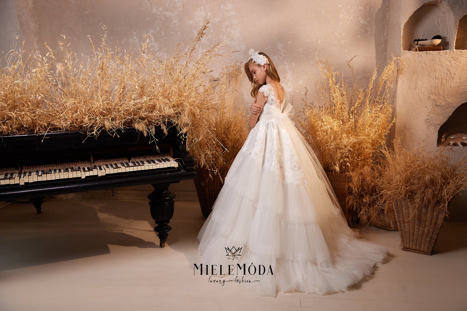 On the Cart page, please add all additional information regarding the customization of your order, for example - your child's exact measurements, train or no train, etc. We do require the following measurements: Chest, Waist and Length from Underarm to Hem (where you would like the dress to end). If your gown has sleeves, please also include the Bicep circumference, sleeve length from shoulder to wrist and wrist circumference. Use the bellow guide for guidance on how to correctly measure. If you need further help taking the correct measurements, please email us at mielemoda@gmail.com