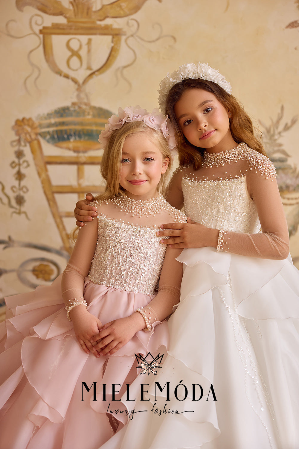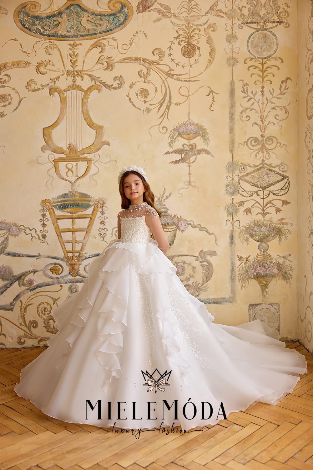 On the Cart page, please add all additional information regarding the customization of your order, for example - your child's exact measurements, train or no train, etc. We do require the following measurements: Chest, Waist and Length from Underarm to Hem (where you would like the dress to end). If your gown has sleeves, please also include the Bicep circumference, sleeve length from shoulder to wrist and wrist circumference. Use the bellow guide for guidance on how to correctly measure. If you need further help taking the correct measurements, please email us at mielemoda@gmail.com